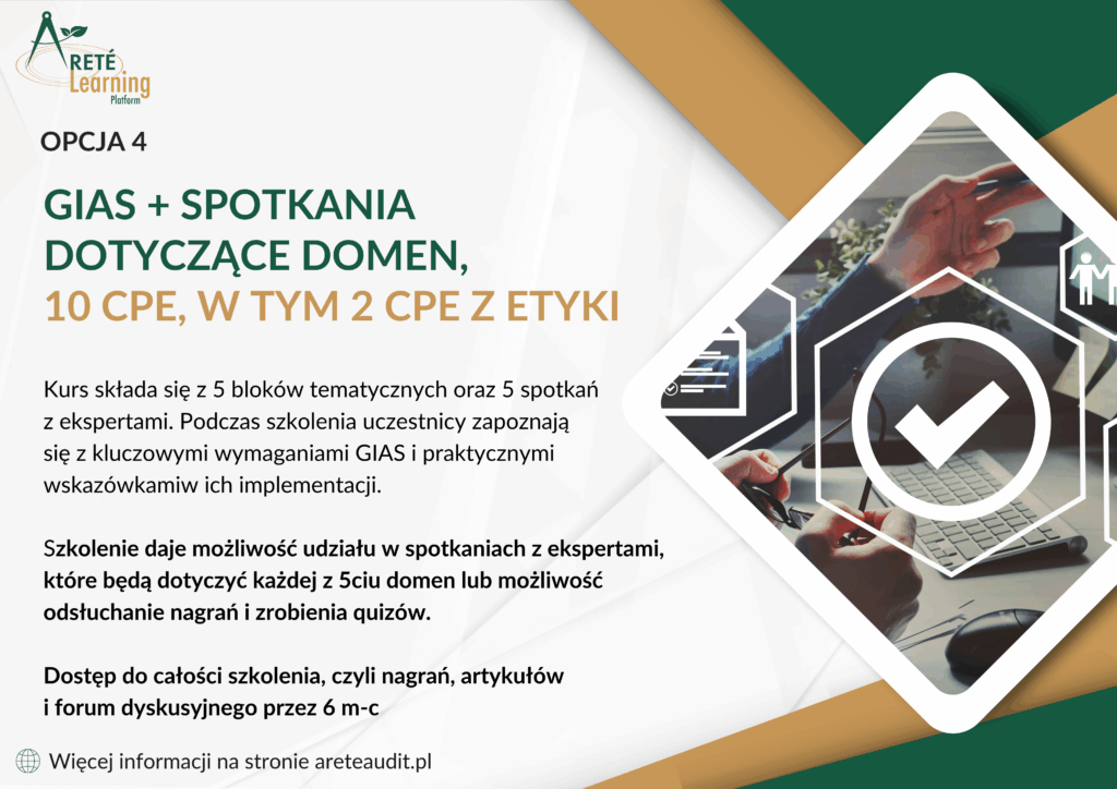 Globalne Standardy Audytu Wewnętrznego + spotkania dotyczące domen – 10 CPE, w tym 2 CPE z etyki